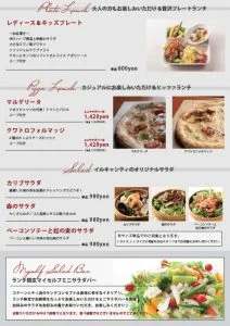 ピッツァランチや、お子様連れに嬉しい「レディース&キッズプレート(¥800)」も完備している。誰と来ても外さない。